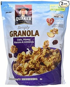 View Quaker Oats Natural Granola US. Now you can enjoy all the deliciousness of this perfect taste duo with quaker® oats & honey granola. Quaker, simply granola breakfast cereal, oats honey almonds & raisins, 28 oz.