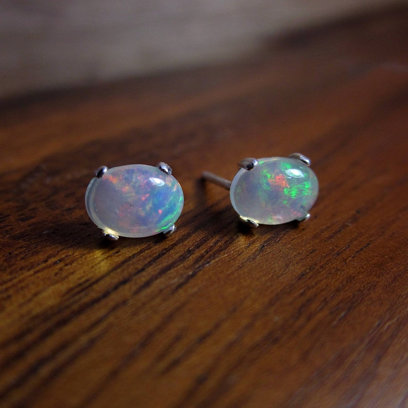 Opals are also known as the queen of gems. Shinygem sparkling opal druzy earrings 6mm small size round stud earrings mineral natural gem stone stud earrings gift for women. Opal stud earrings 14k gold filled blue opal studs,8mm round shape new fashion. Opals can be worn with any dress and for many purposes as the colour of the opal changes depending on the angle it's viewed boulder opal tends to make good earrings as it easier to find natural pairs that are closely matched.