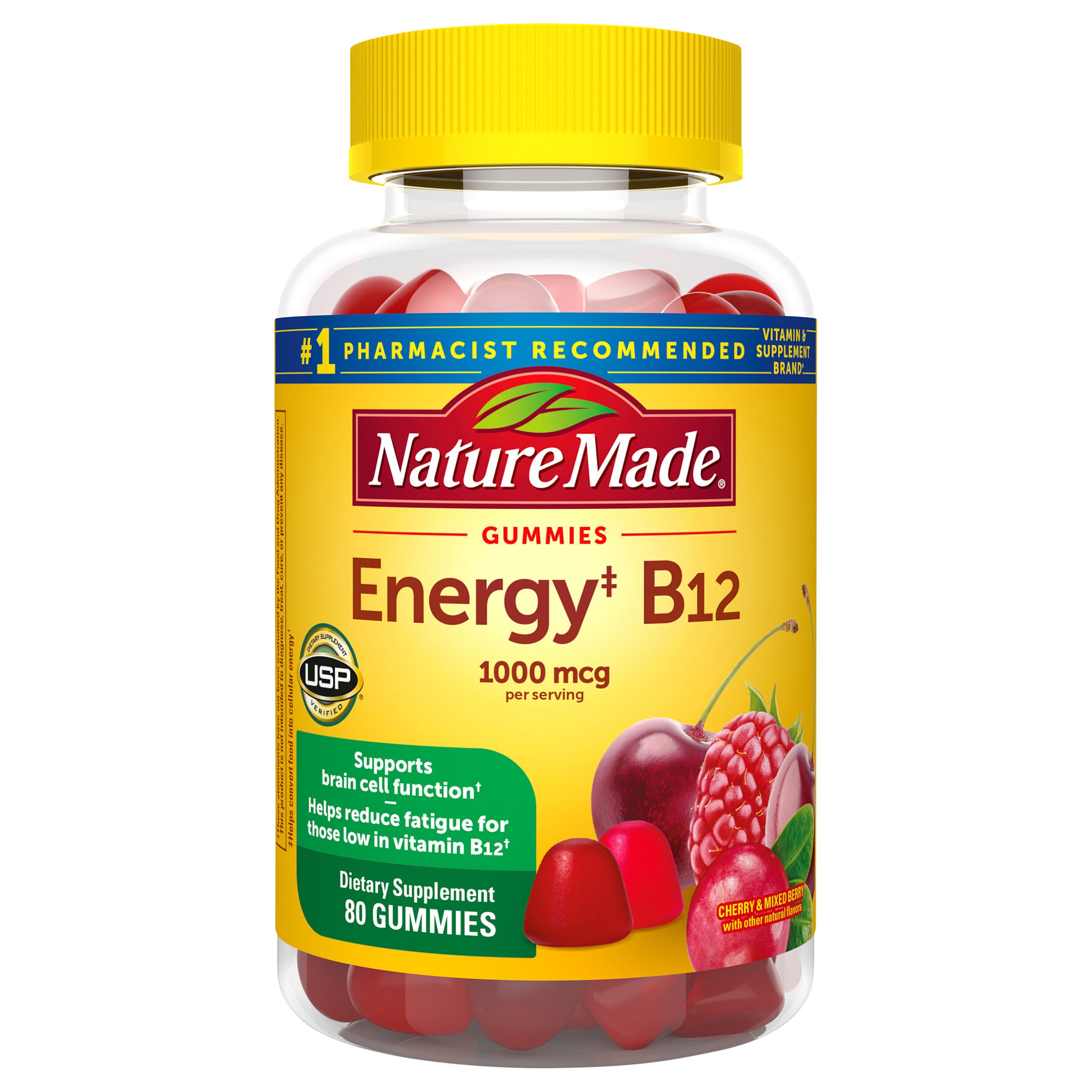No.1 pharmacist recommended vitamin & supplement brand. Nature made energy‡ b12 gummies are a delicious, easy way to obtain vitamin b12, which supports cellular energy production in the body.† nature made energy‡ b12 gummies contain 1000 mcg vitamin b12 per serving (2 gummies). Store in a cool, dry place, out of reach of children. 2 pack nature made energy b12 1000 mcg gummies, 160 ct for metabolic health,2 pk.